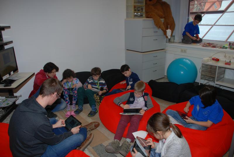 A Neumann János Számítógép-tudományi Társaság Közoktatási Szakosztály szakembereinek részvételével, az ELTE IK T@T Labor (http://tet.inf.elte.hu/rolunk/ ) üzemeltetésében egy barátságos hangulatú, új színtér nyílt a közoktatás, a tanárképzés és az oktatási technológiafejlesztés közelítése érdekében. A T@T Kuckót az ELTE Informatikai Kar második emeletén találjuk, s már az oda vezető folyosón elhelyezett – QR-kódokkal ellátott, s a kiterjesztett valóság lehetőségét is felvillantó – tablók is árulkodnak arról, hogy itt évek óta izgalmas módszertani munka folyik, melynek találkozási pontja lehet a Kuckó. Turcsányi-Szabó Márta, a Kar Média- és Oktatásinformatika Tanszékének egyetemi docense vezetett körbe a kreatív légkört árasztó helyiségen.