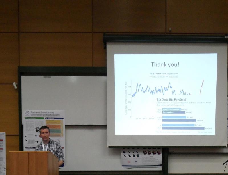 A rendezvény plenáris előadását Dr. Laki Sándor, az ELTE adjunktusa tartotta, aki a Big Data világának lehetőségeit és felmerülő kihívásait mutatta be. Ezt követte a poszter szekció, ahol a felkészült PhD hallgatók magas színvonalú kutatási munkáit egy rövid poszteres prezentáció, illetve kötetlen beszélgetés formájában ismerhették meg a résztvevők.