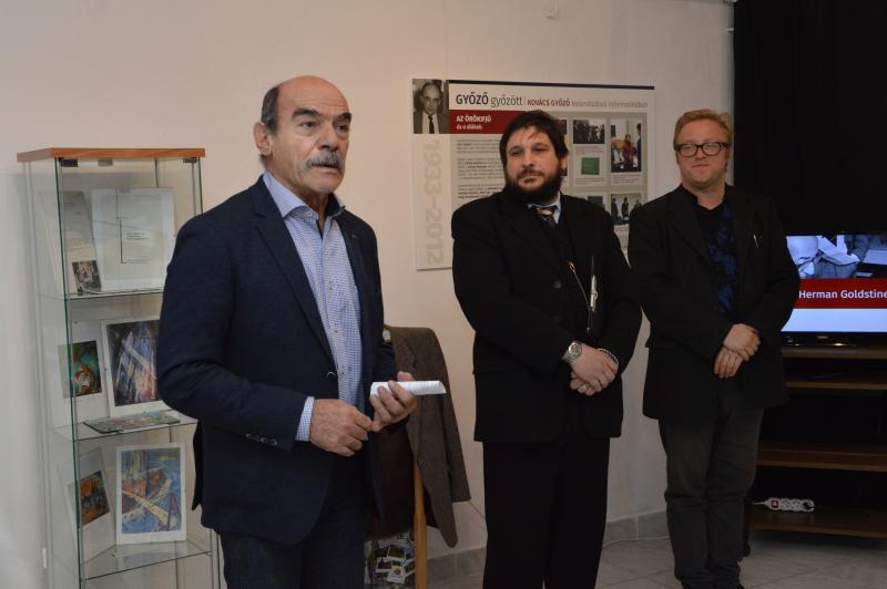 Alföldi István nagy szeretettel emlékezett Kovács Győzőre, aki nemcsak az informatikatörténeti örökségvédelem egyik úttörője volt, de lehengerlő előadó és tudományos ismeretterjesztő is, aki tömegek számára tette elérhetővé az informatika világát. E kiállítás sok közös munkájukra és élményükre is emlékeztet.