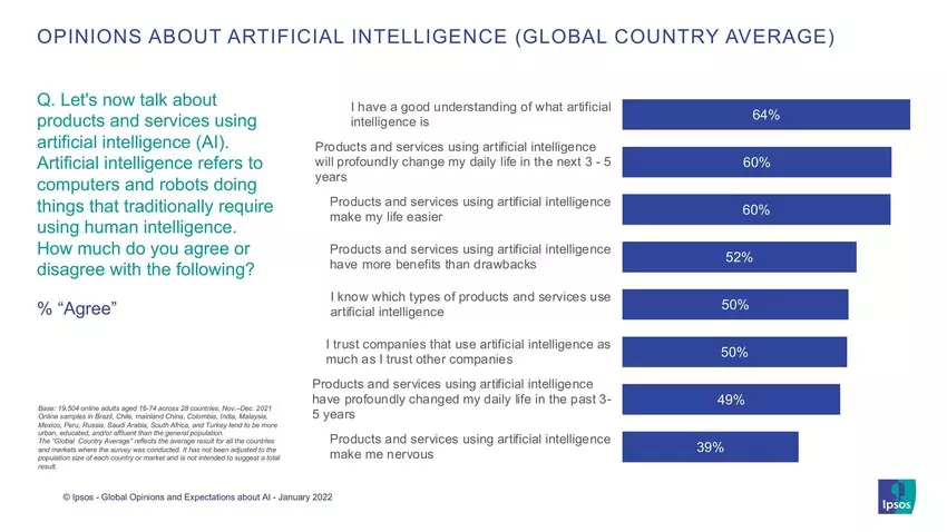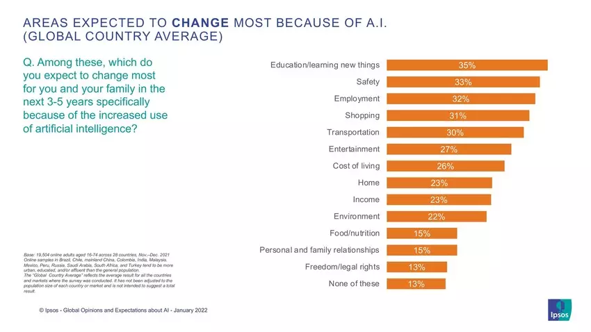 A mesterséges intelligencia mindennapi életre gyakorolt hatásáról az Ipsos öt grafikonja számol be: