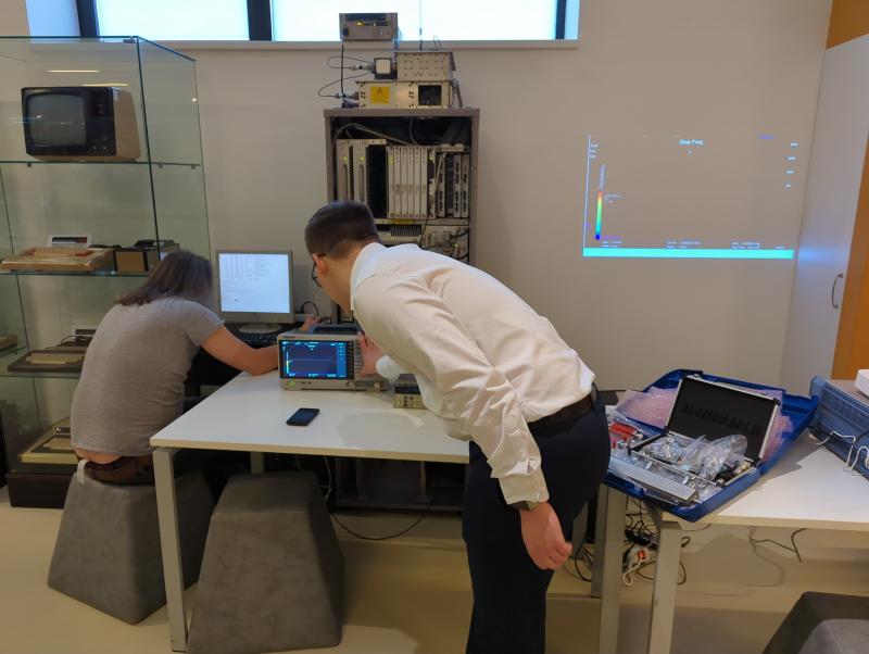 A délelőtt folyamán a 2G/GSM mintahálózat működését vizsgáltuk spektrumvizualizáció segítségével. Izgalmas volt látni a burst-ök elhelyezkedését és a spektrumkihasználtság dinamikáját. A résztvevők mélyebb betekintést nyerhettek az OFDM (Orthogonal Frequency-Division Multiplexing) moduláció elméleti hátterébe. Bár a GSM még TDMA/FDMA alapú, az előadás kiválóan vezette le, hogy a 2G kapacitáskorlátai és többutas terjedési problémái hogyan hívták életre a 4G és 5G alapját jelentő OFDM megoldásokat. Ez a szakmai ív segítette a résztvevőket abban, hogy kontextusba tudják helyezni a jelenlegi hálózatfejlesztési irányokat.